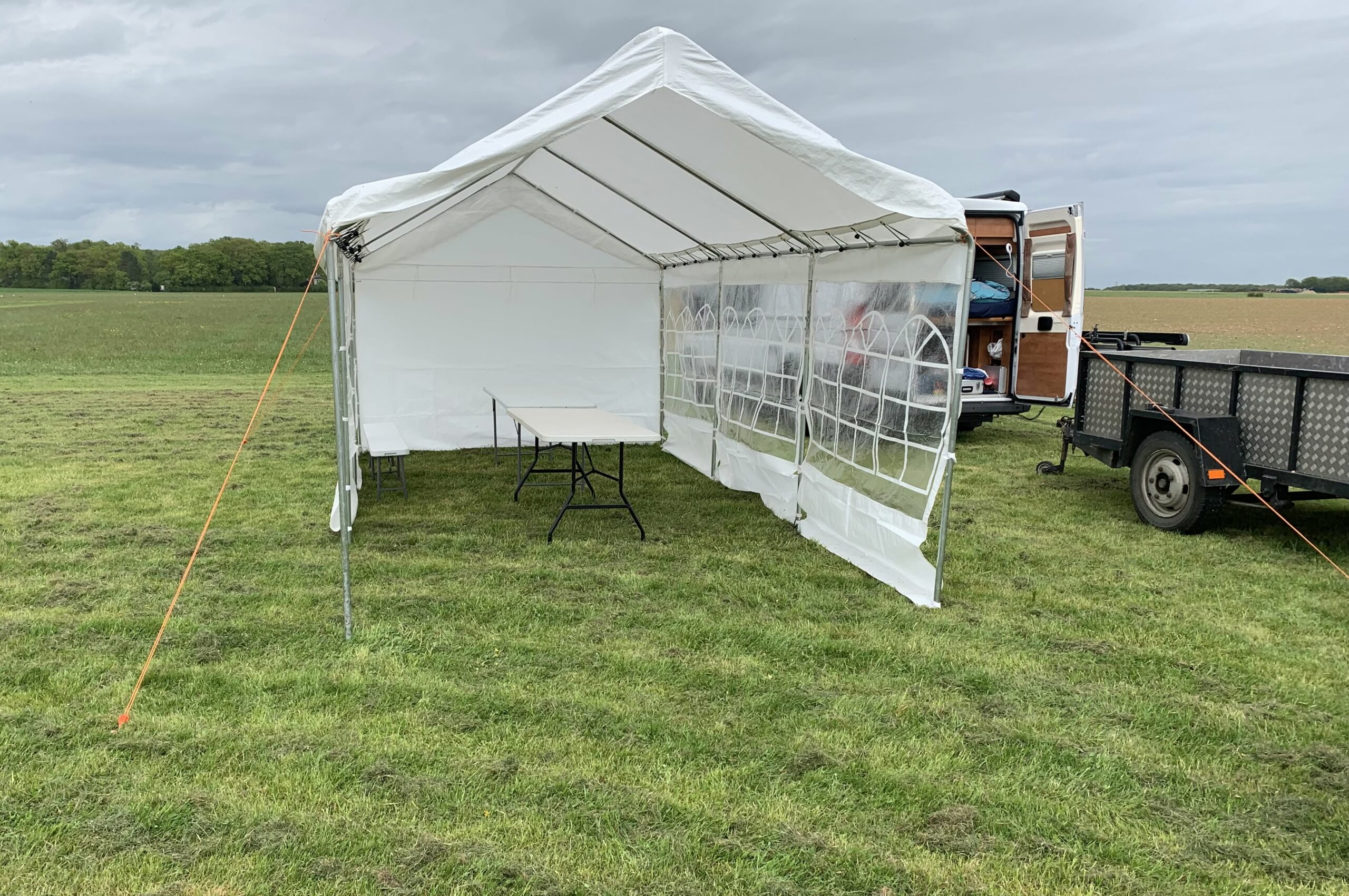 Dimanche au petit matin, les organisateurs œuvraient au montage de la logistique (tente, informatique, sono…).